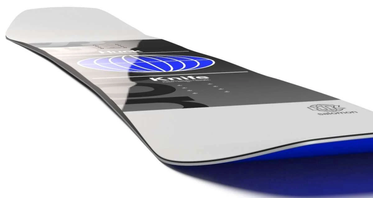 The Salomon Junior’s Grom Huck Knife Snowboard is a true twin high performance park board, features Quad Camber for a mix of forgiveness and edge control, and a Popster Construction with an Aspen Core for more pop off the lip.